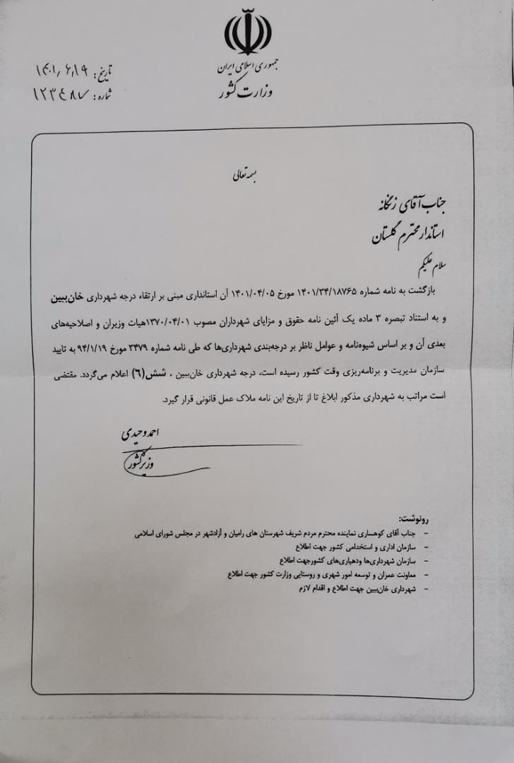 ***ارتقاء درجه شهرداری خان ببین پس از گذشت ۲۸ سال***