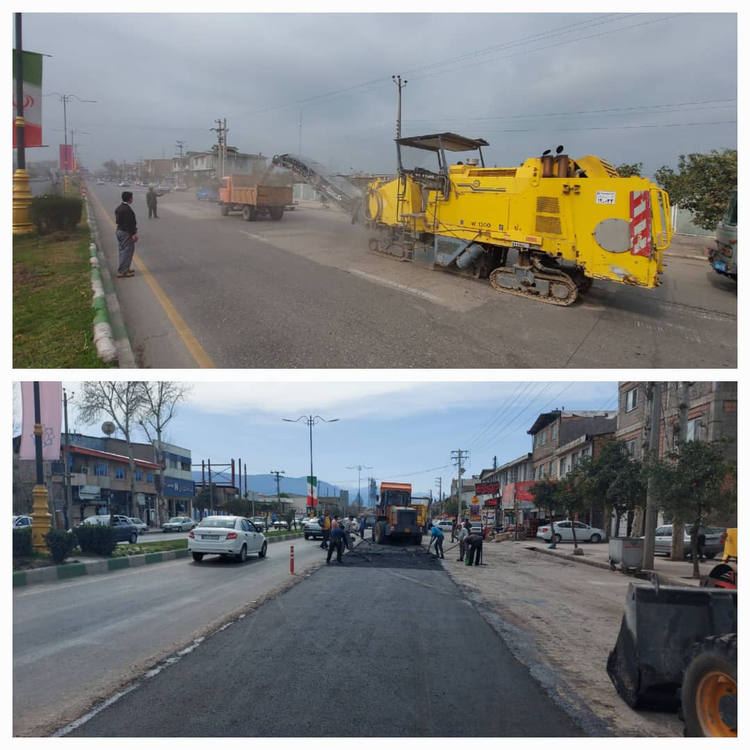 عملیات روکش و لکه گیری آسفالت خیابان امام ره