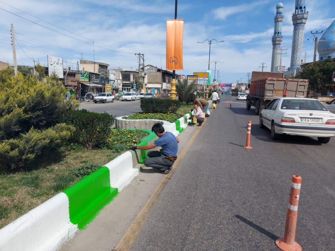 عملیات رنگ آمیزی بلوار خیابان امام ره